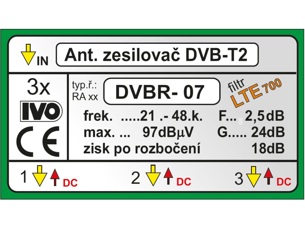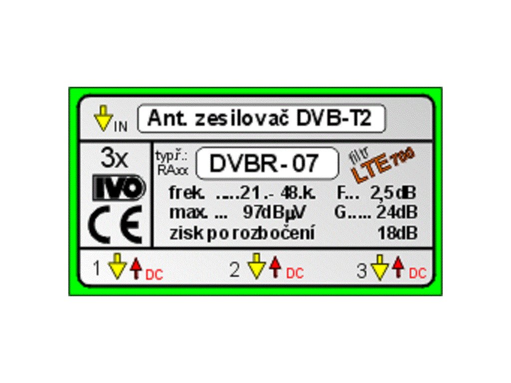 DVBR-07 Ant.zesil.DVB-T2 1in/3 OUT 5G 26dB