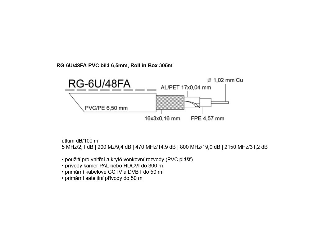 KX93 RG-6U/48FA-PVC bílá 6,5mm, Roll in Box 305m