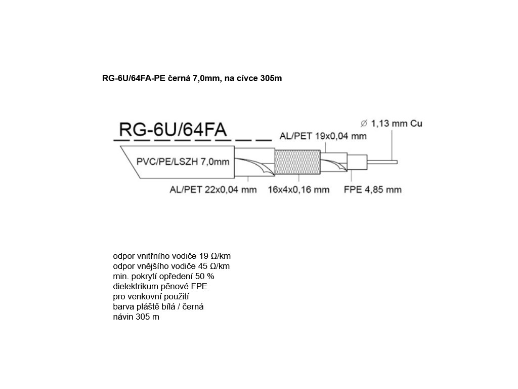 KX94 RG-6U/64FA-PE černá 7,0mm, na cívce 305m