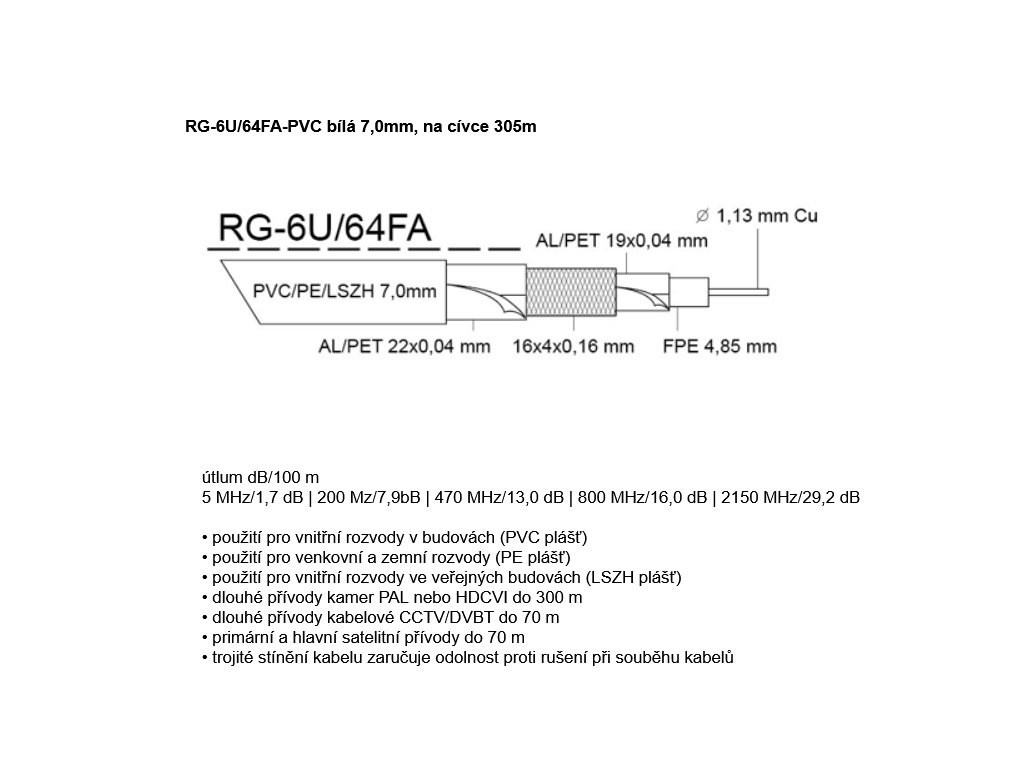 KX98 RG-6U/64FA-PVC bílá 7,0mm, na cívce 305m