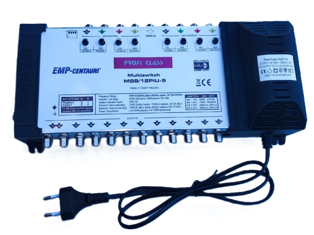 Kompaktní multipřepinač pro instalace distribuce signálu ze dvou satelitních pozic až 12 účastníků, včetně pozemních rádio a TV programů.