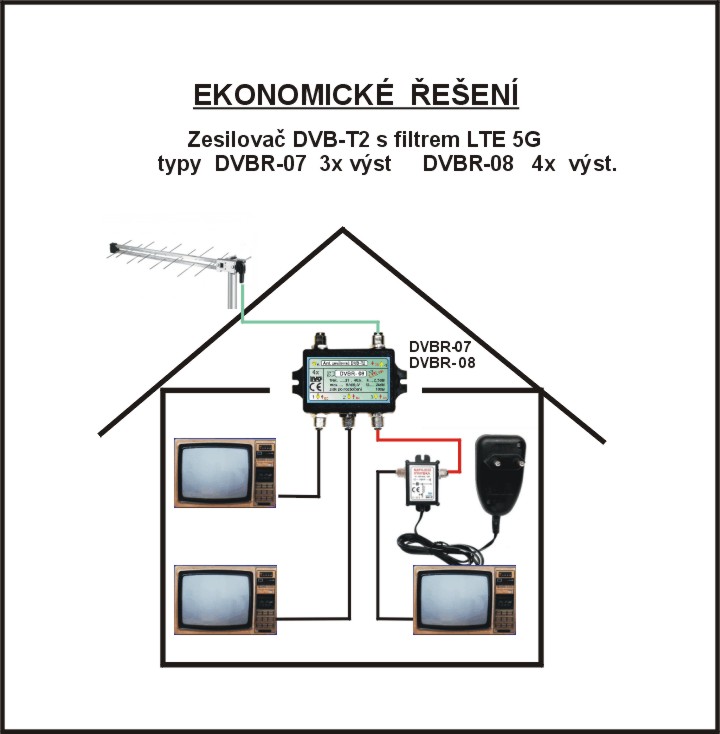 V poslední době absolutně vyhrávají předzesilovače s fitrem pro odladěním rychlého internetu O2, UFON, LTE, 5G, který je pro DVB-T2 rušením.