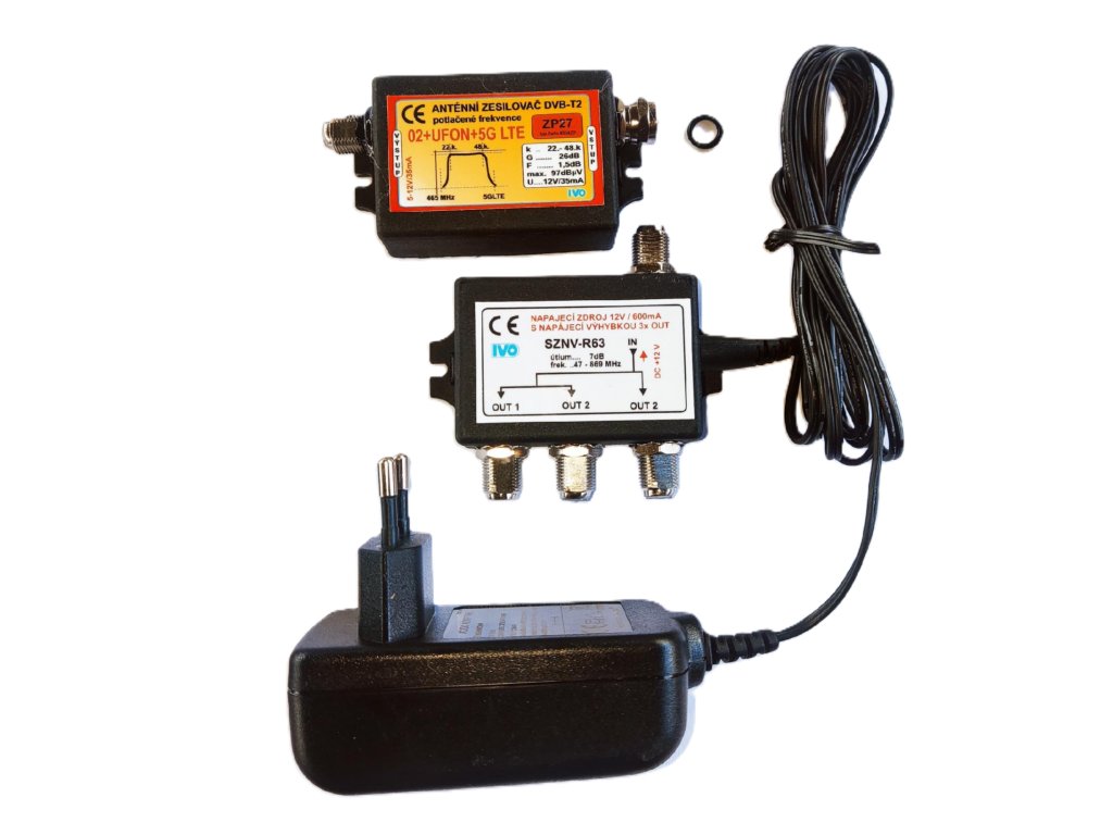 SET: ant. zesilovač 26dB, s filtry: O2,UFON,5G LTE-35dB venkovní voděodolné provedení + zdroj s nap. výhybkou se 3 výstupy