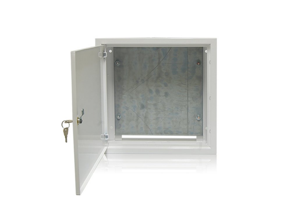 Montážní ochranná skříň uzamykatelná s montážní plotnou pro TV, SAT nebo WIFI prvky.Skříň je vyrobena z pozinkovaného materiálu proti zrezivění s povrchovou úpravou bílé barvy.Po odstranění krytek získáme otvory pro kabeláž na horní a spodní straně.