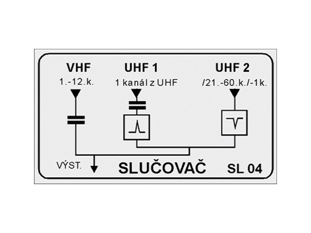 Slučovač: 1kanál z UHF + zbytek ( bez 1k. zUHF ) + VHF