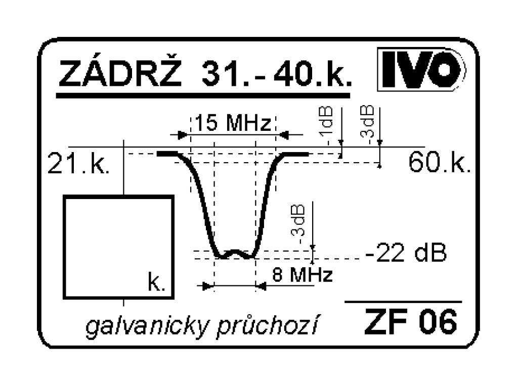 Zádrž dvouobvodová pro jeden kanál.Slouží k potlačení rušivého kanálu nebo k jeho potlačeníGalvanicky průchozí.Při objednávce lze udat kanál pro naladění.