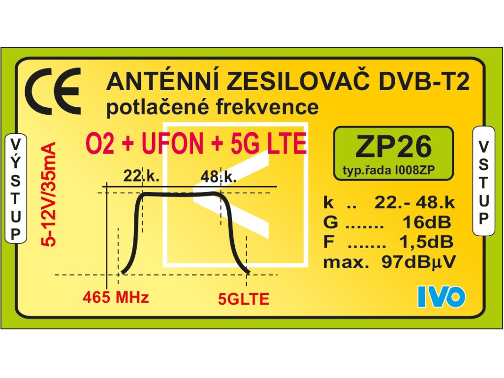 Nízkošumový předzesilovač s potlačení O2+UFON+LTE frekvencí. Rozsah 22-48.k