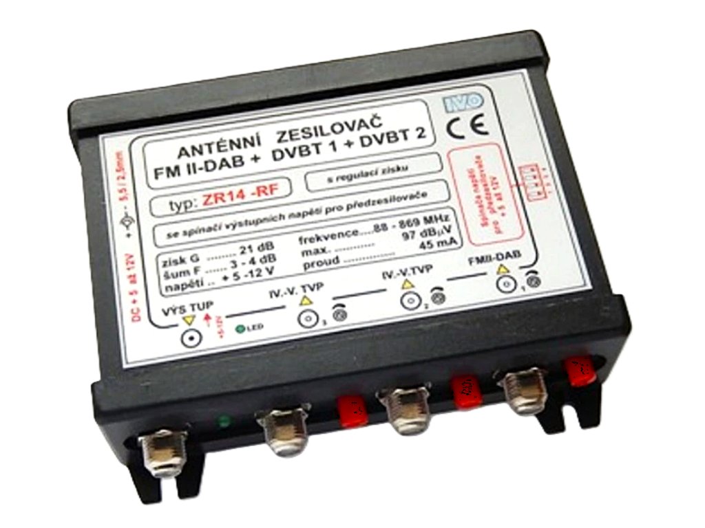 ZR14-RF ..Zes.FMII-DAB+DVBT+DVBT/21dB-R + zdroj 12V 2A