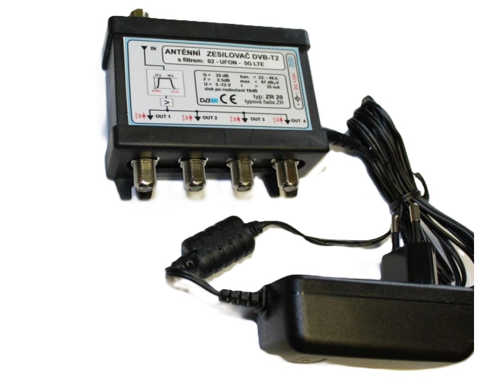 ZR20 ..Ant.zesilovač DVB-T2 4xOUT 25dB+zdr + filtry UFON-O2 + LTE 700